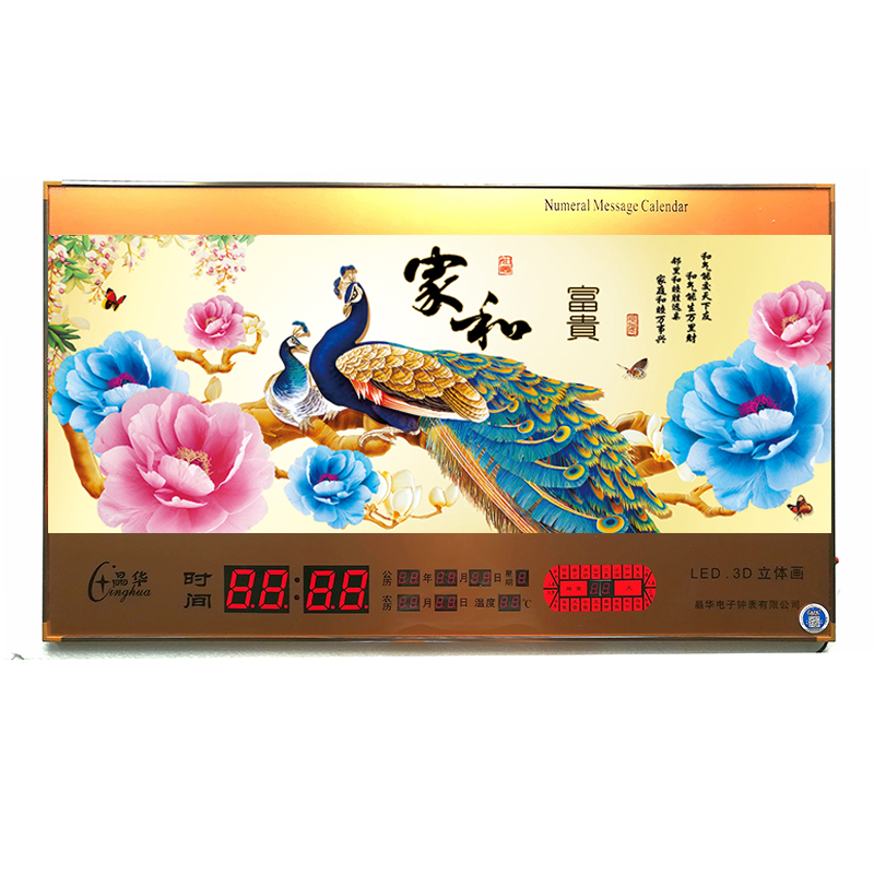 新房客廳裝飾日歷掛鐘,家和風(fēng)景萬(wàn)年歷,超薄七彩燈光更漂亮