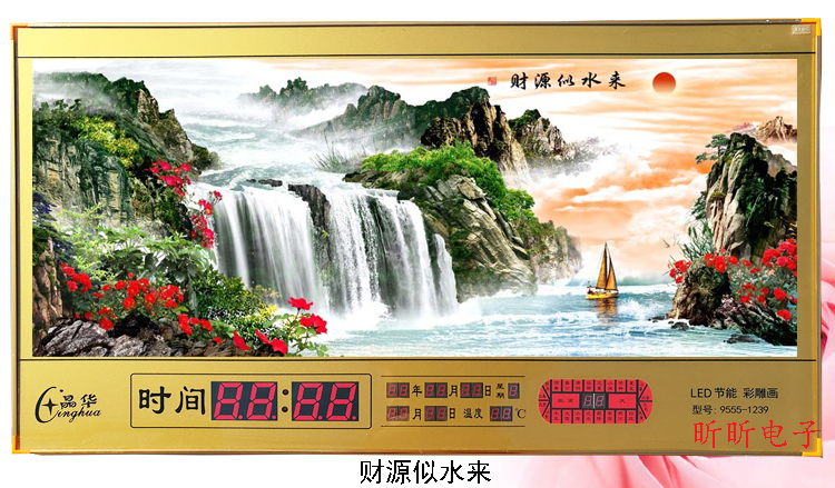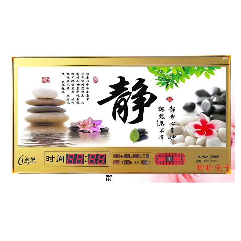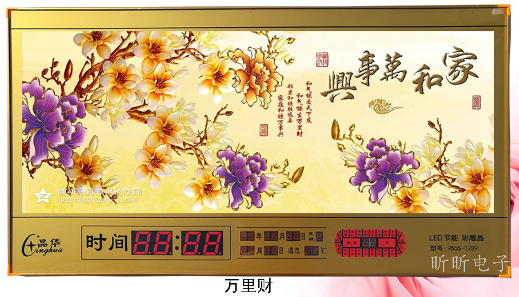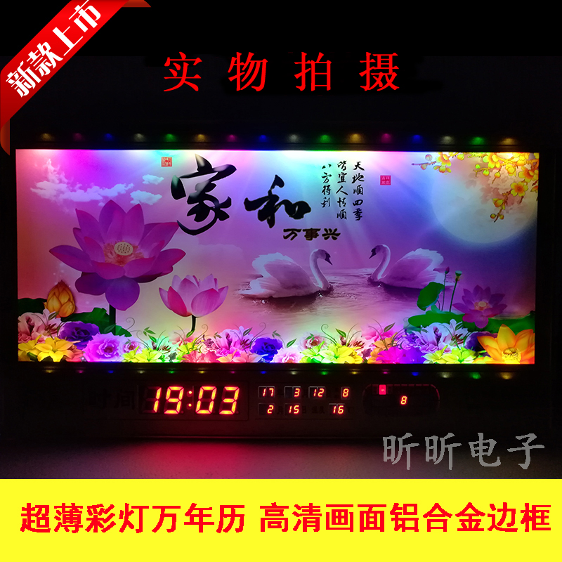 新房客廳裝飾日歷掛鐘,家和風(fēng)景萬(wàn)年歷,超薄七彩燈光更漂亮