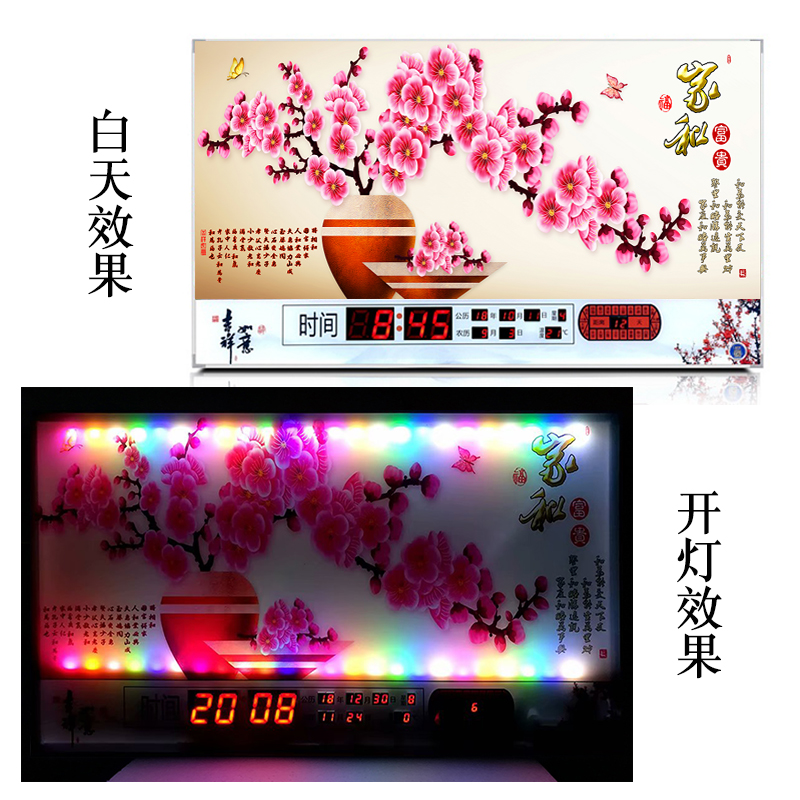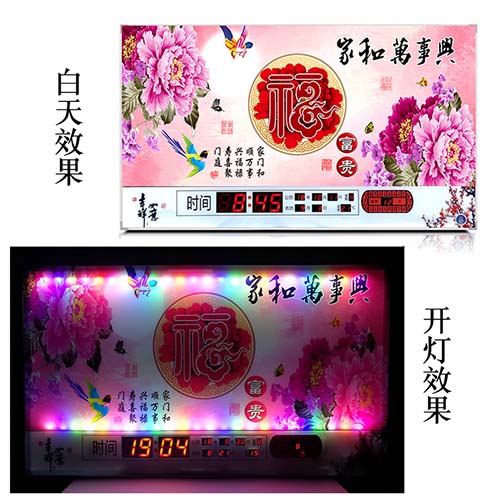 新房客廳裝飾日歷掛鐘,家和風(fēng)景萬(wàn)年歷,超薄七彩燈光更漂亮